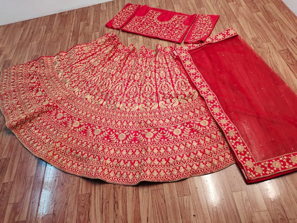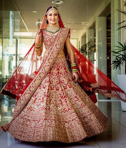 Prodigious Red Color Wedding Wear Taffeta Silk Coding Embroidered Work Lehenga Choli