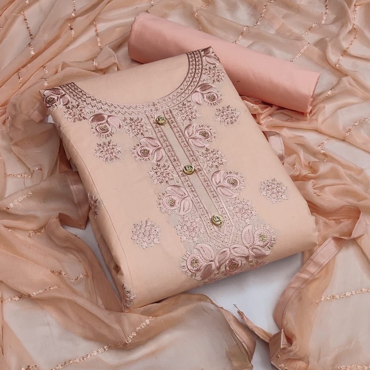 Remarkable Peach Color Cotton Sequence Work Salwar Suit For Women