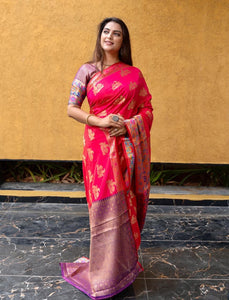 Remarkable Rani Pink Color Art Silk Designer Zari Weaving Saree Blouse