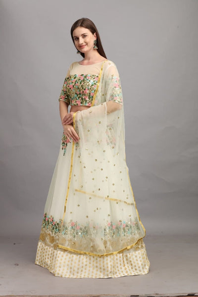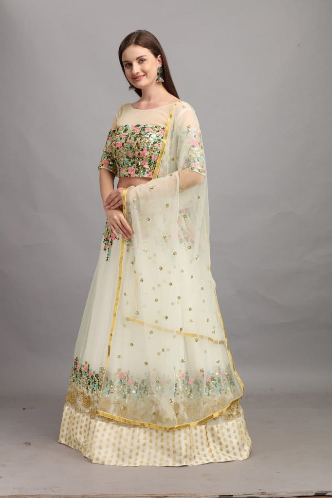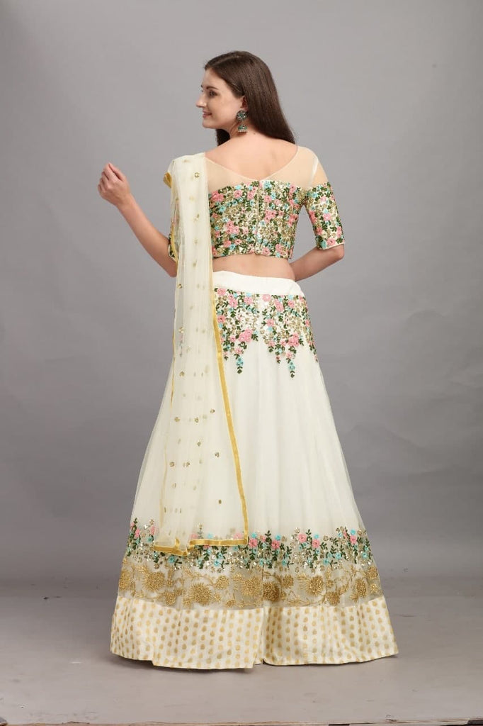 Sizzling Off White Color Net Embroidered Work Lehenga Choli For Fesive Wear