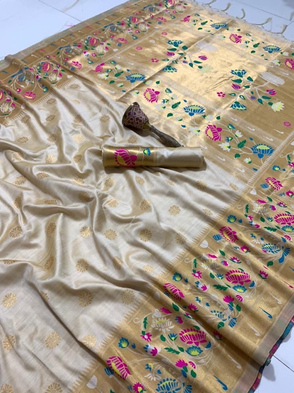 Sizzling Off White Color Wedding Wear Kanchpuriam Pethani Silk Zari Work Saree Blouse