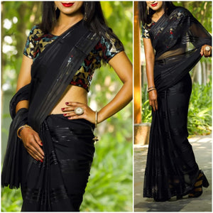 Starling Black Color Georgette Regular Wear Zari Work Saree Blouse