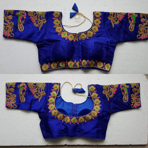 Stunning Royal Blue Color Full Stitched Silk Embroidered Work Blouse