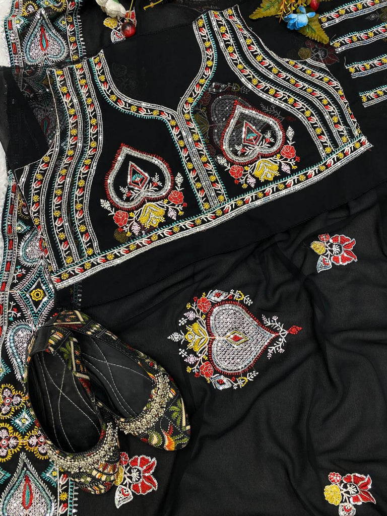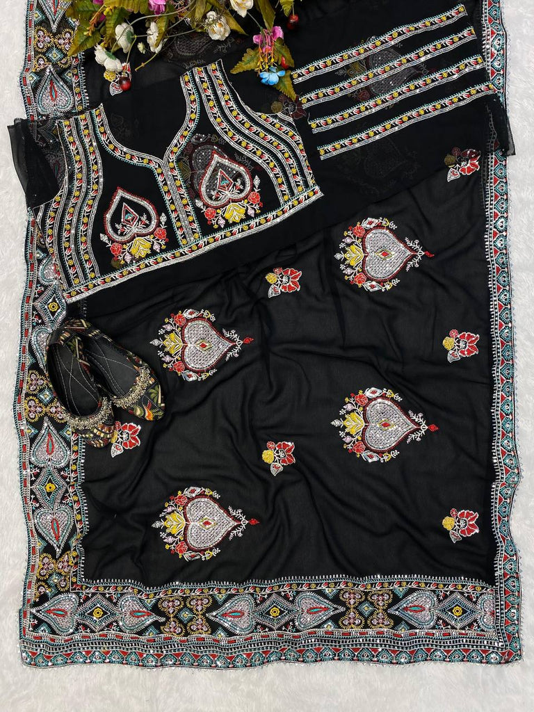 Stylish Black Color Georgette Sequene Embroidered Work Saree Blouse