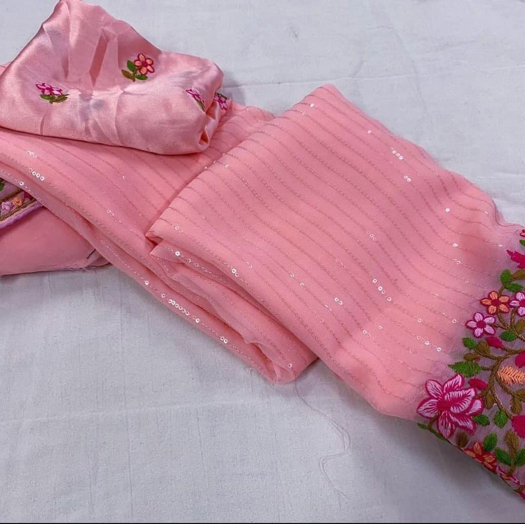 Surpassing Pink Color Regular Wear Georgette Embroidered Work Saree Blouse