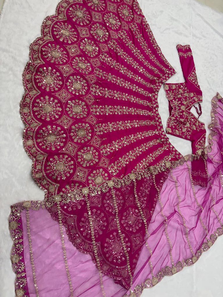 Two-Tone Silk Designer Lehenga Choli with Intricate Thread & Sequins Work