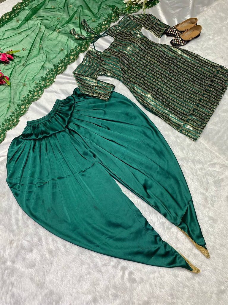Unique Green Color Malay Silk Sequence Embroidered Work Dhoti Salwar Suit