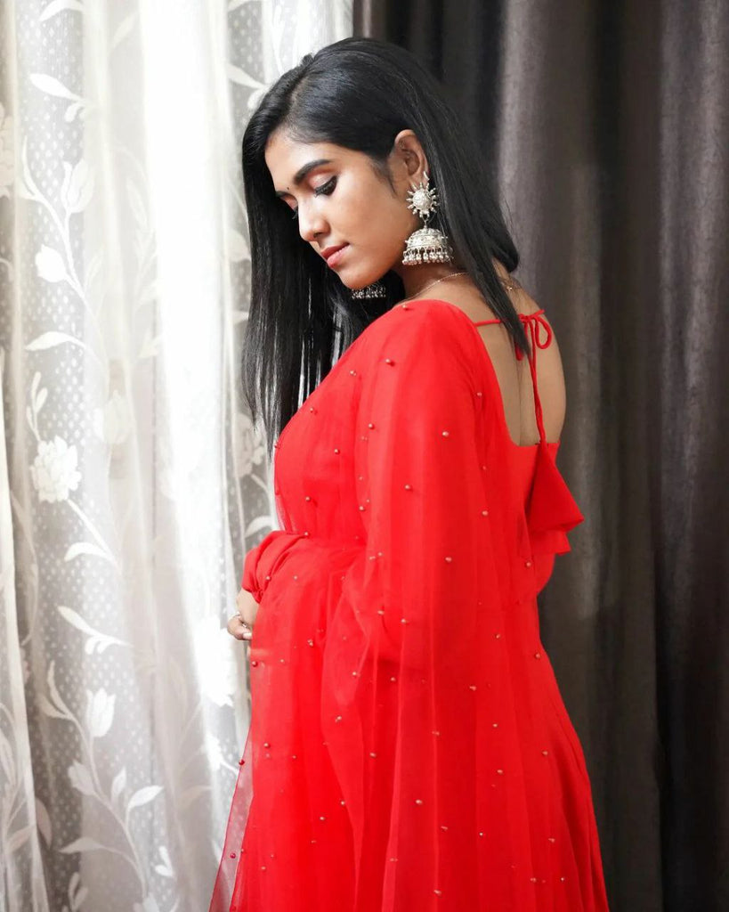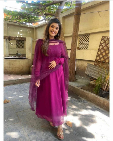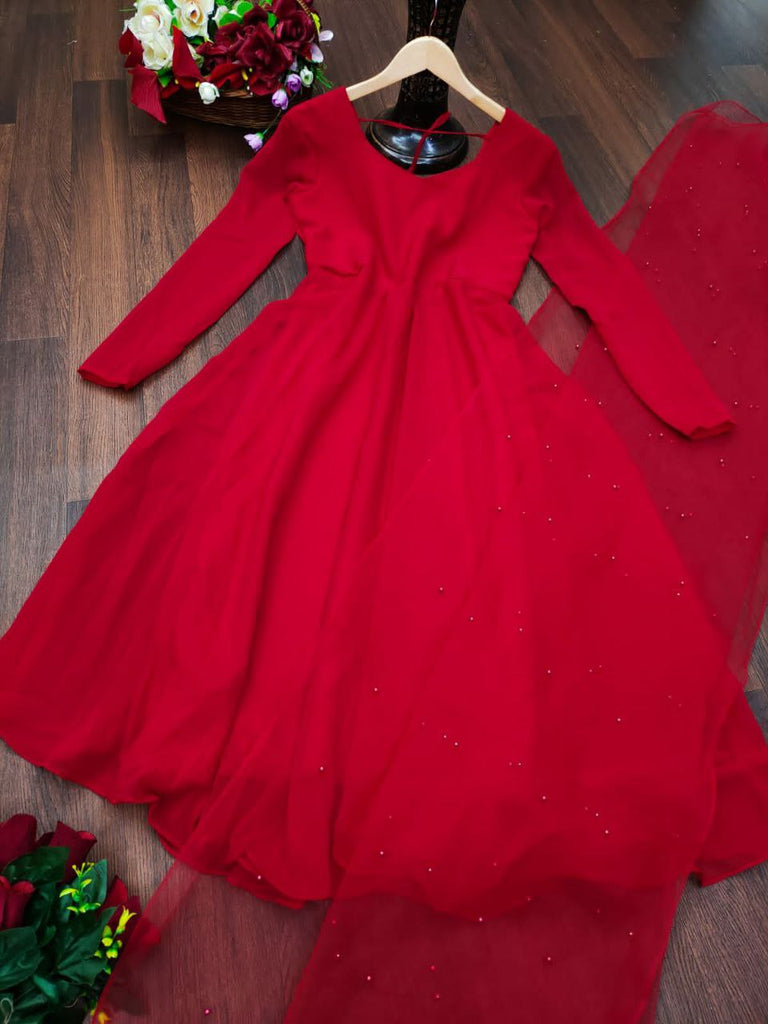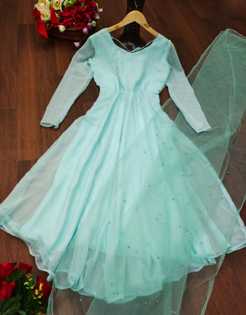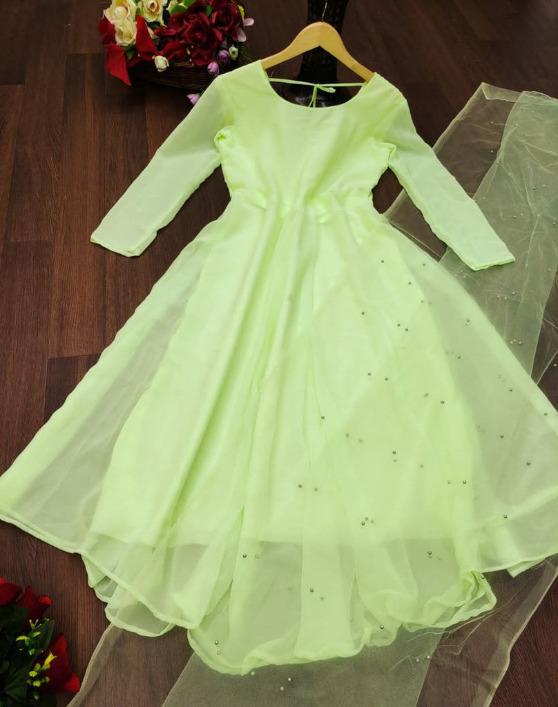 Villefashion Georgette Gown with Net Dupatta for Girls