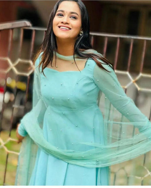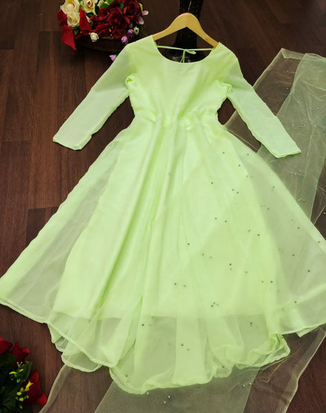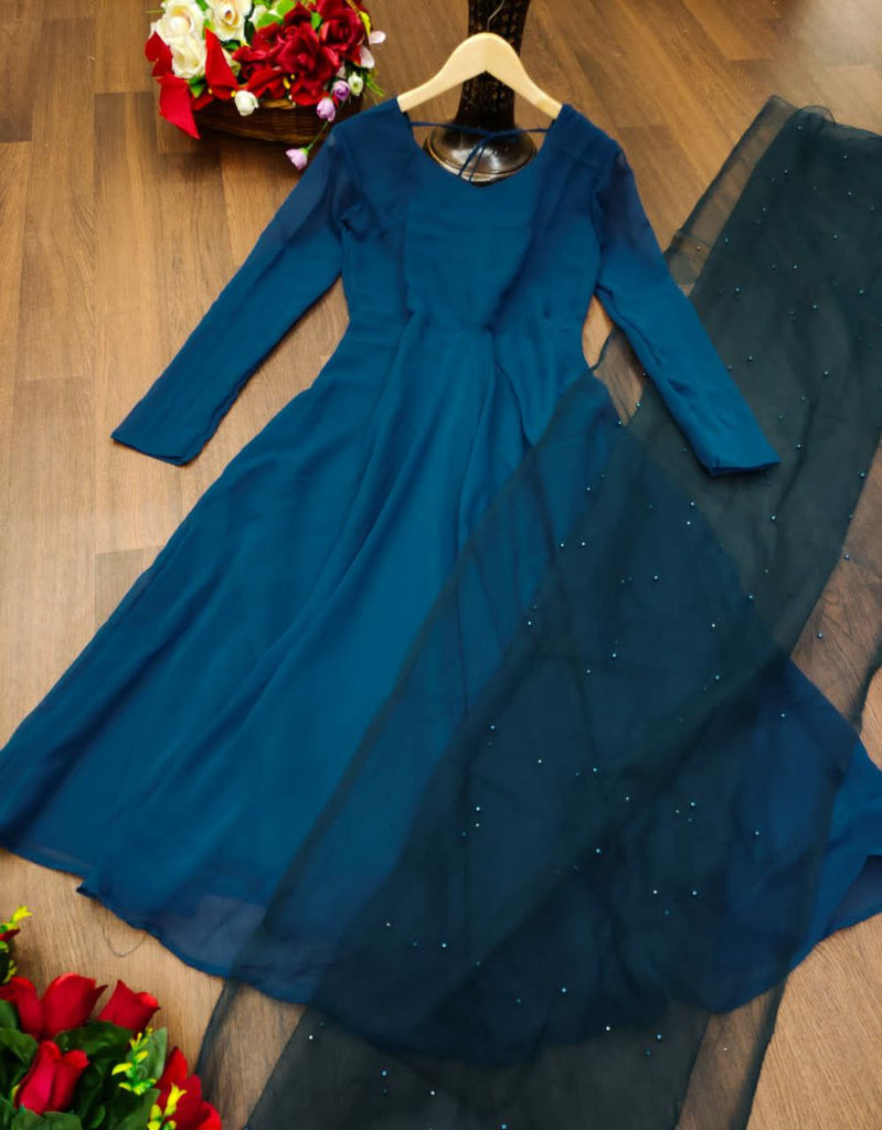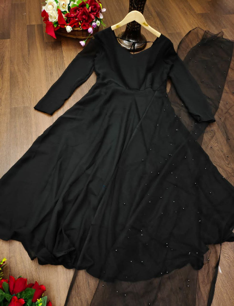 Georgette Gown with Net DupattaGown Fabric : Georgette with attractive Neck pattern